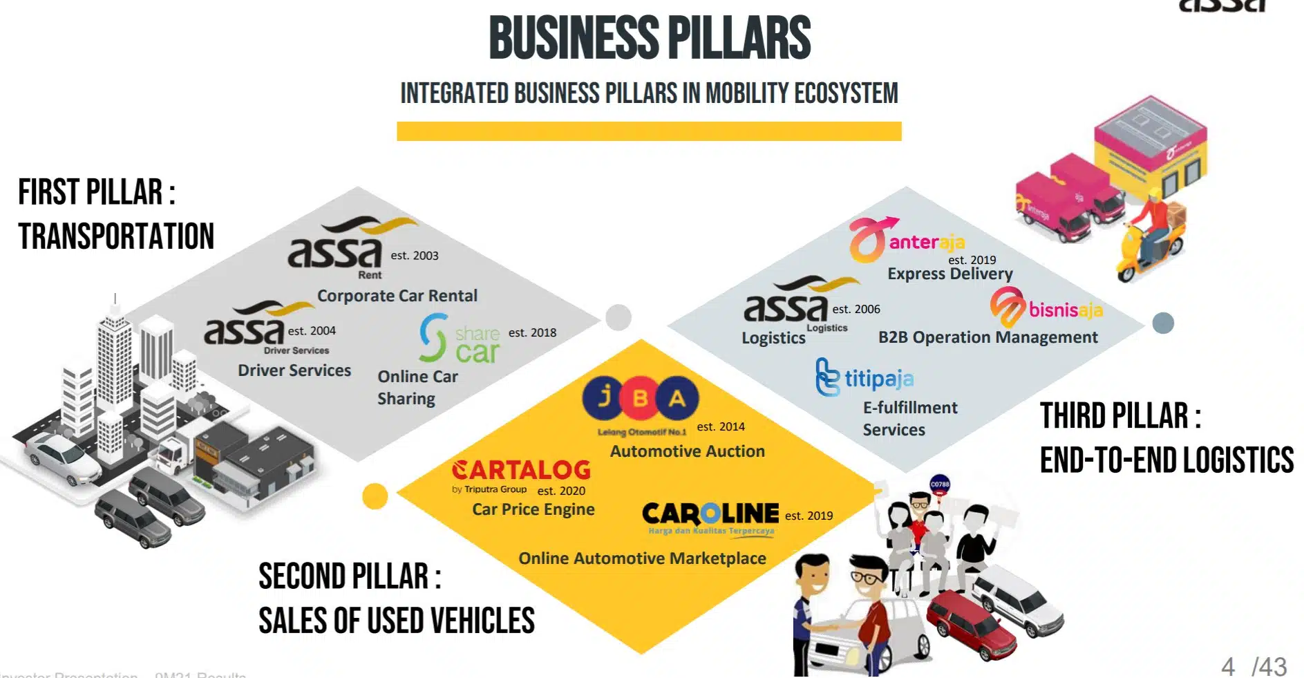 Pertama, ASSA memiliki pilar transportation. Di mana ASSA memiliki bisnis untuk menyewakan mobil dan driver – yang telah berdiri sejak awal tahun 2000.