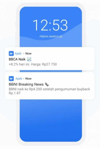 Keunggulan lain dari Ajaib adalah tersedianya fitur ‘Ajaib Alert’, yang dapat memberikan notifikasi secara otomatis kepada penggunanya. Notifikasi tersebut terdiri dari: Notifikasi untuk sinyal beli maupun jual; Notifikasi mengenai berita pergerakan harga saham; dan Notifikasi tentang aksi korporasi yang dilakukan emiten. Dengan adanya fitur Ajaib Alert ini, Anda tidak perlu lagi berulang kali memeriksa aplikasi, hanya untuk sekedar mengetahui ada informasi apa yang tersedia saat itu. Lantaran seluruh informasi yang menjadi kebutuhan Anda sudah diatur dalam sistem Alert. Gimana sangat fleksibel untuk dicoba kan?
