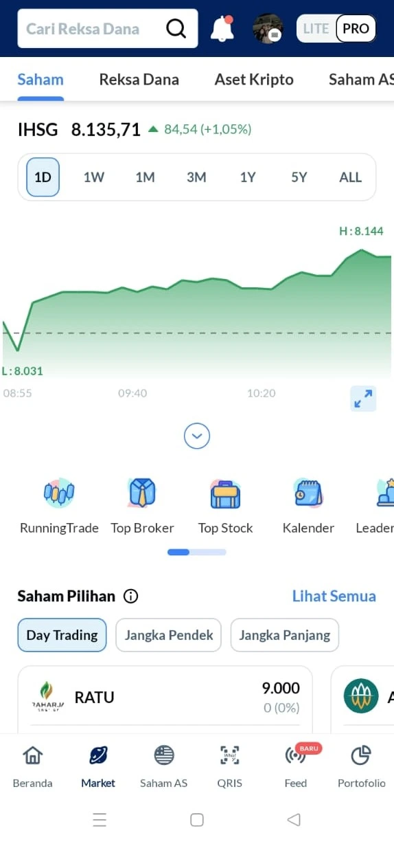 Tampilan Fitur Investasi Saham dan IHSG. Source: Aplikasi Ajaib